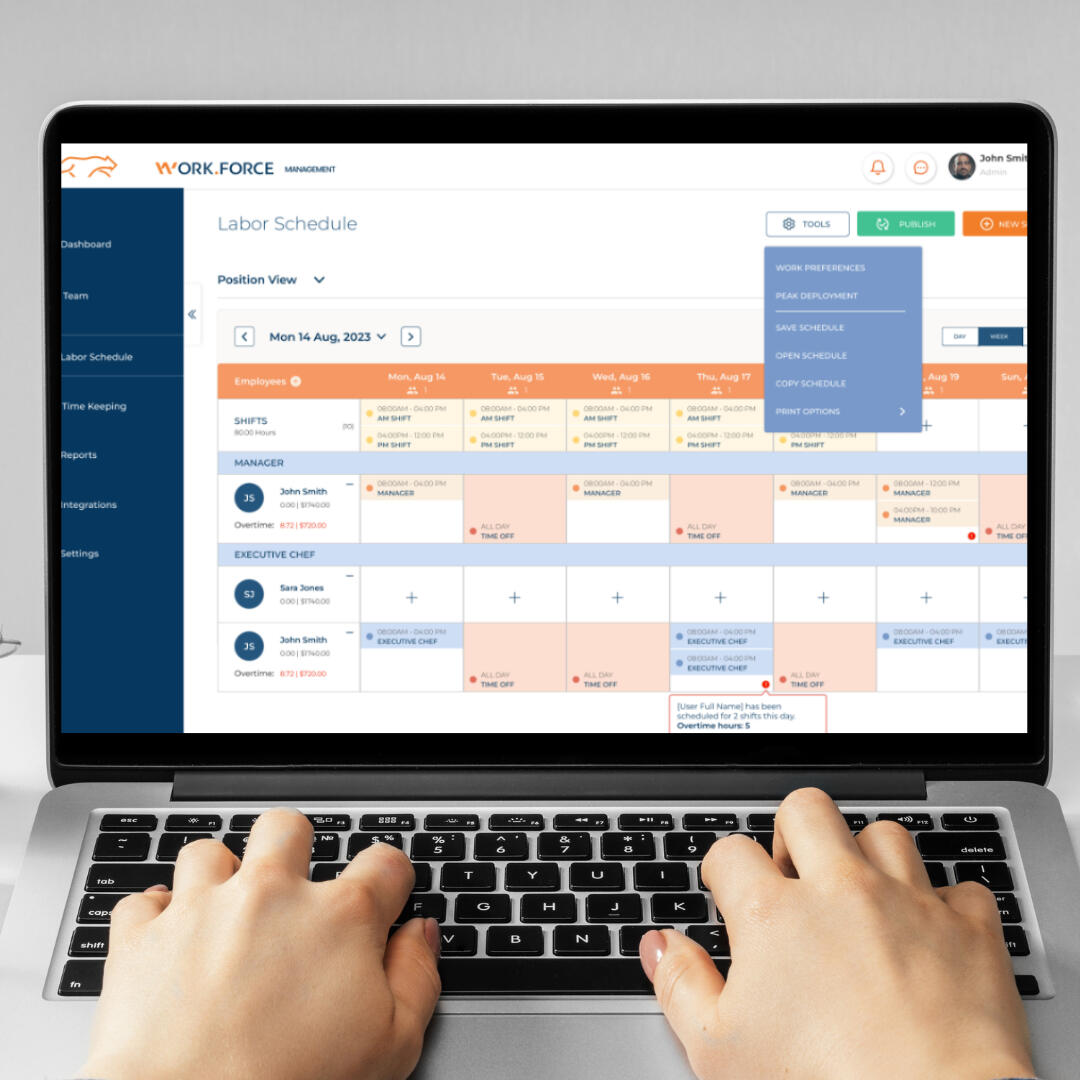 SmartLynX software makes it easy to create and manage schedules, predict labor usage, communicate with employees, and report on time records.